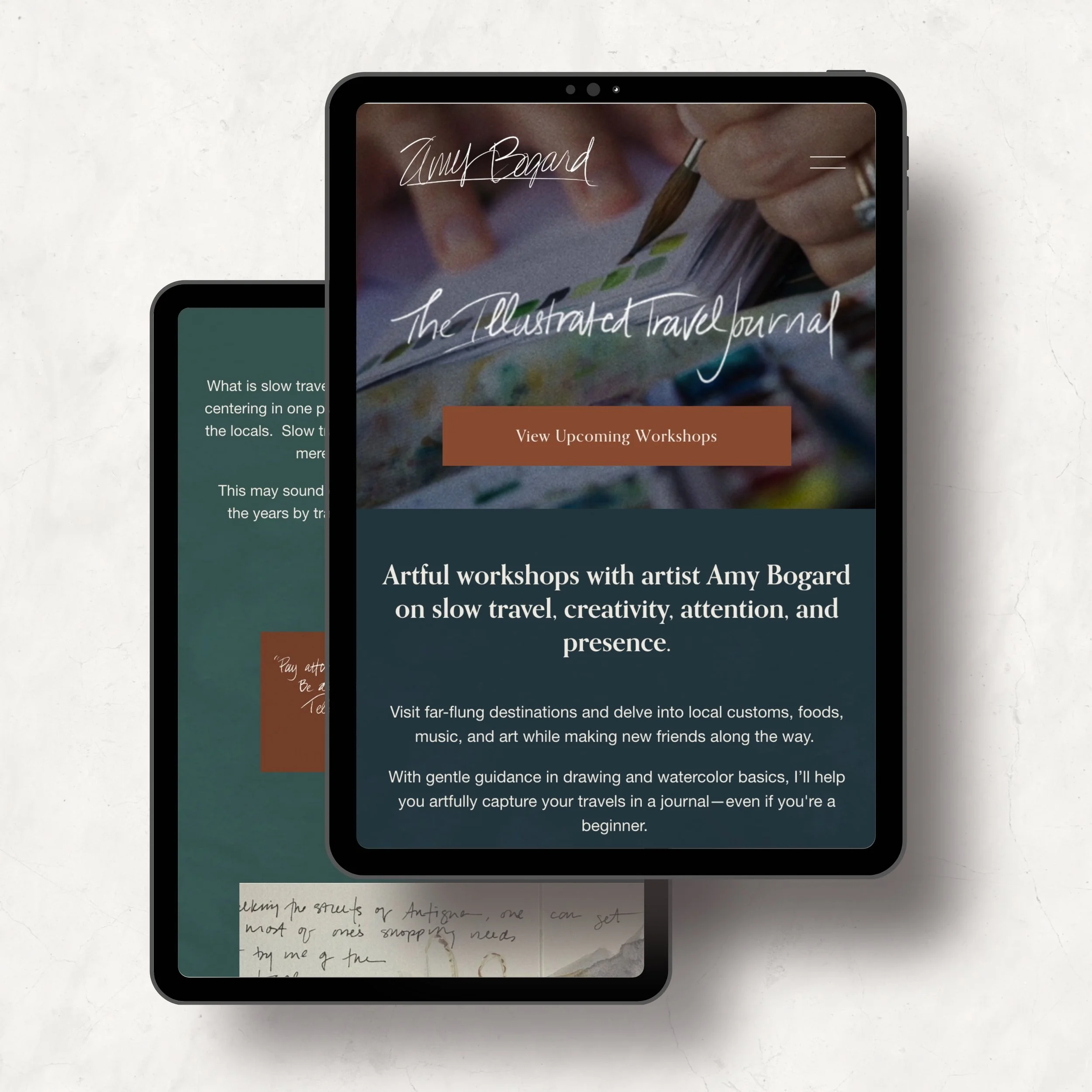 I worked with artist Amy Bogard to design and build her business website. Amy wanted her site to reflect the many layers of her work — her art, teaching, and travels. We began by mapping out her goals and audience, then used her extensive library of artwork to create a site that captures her passion and creative spirit.